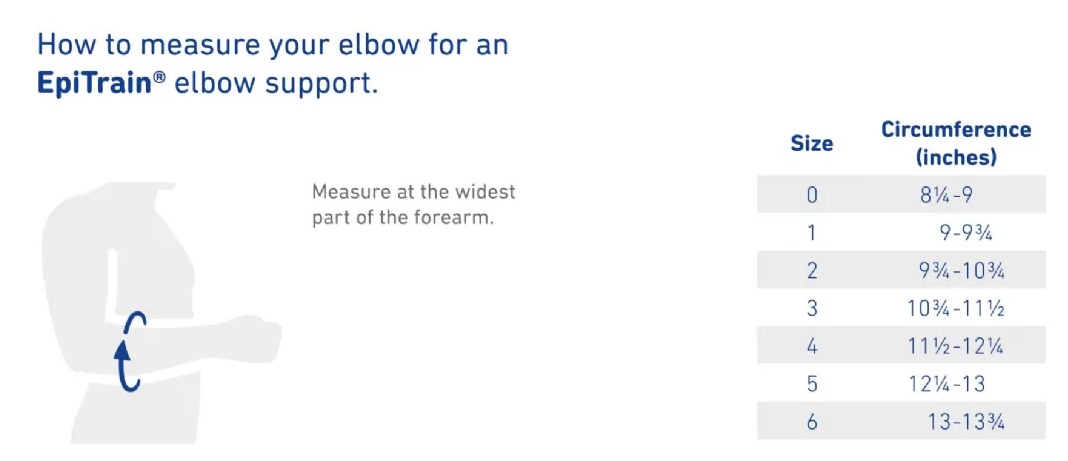 How to measure: Measure around the arm just below the elbow. If you are between sizes, it is suggested that you order the smaller elbow support.