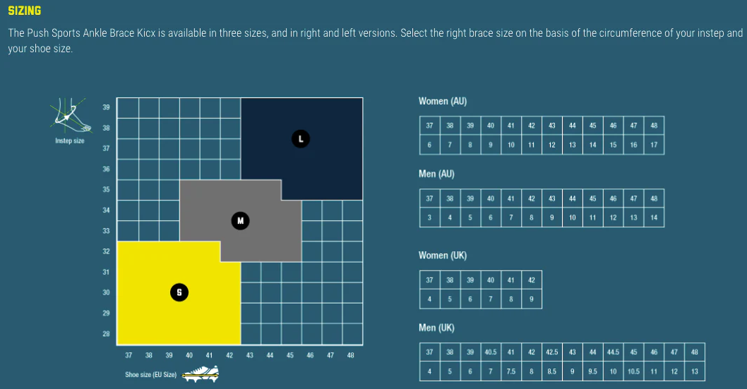 Push Sports Ankle Brace Kicx w/ Rigid Material (RIGHT) 4201121